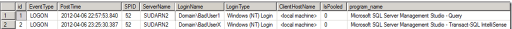 This is the output from the Auditing table to track the applications and users who tried to connect to SQL Server.